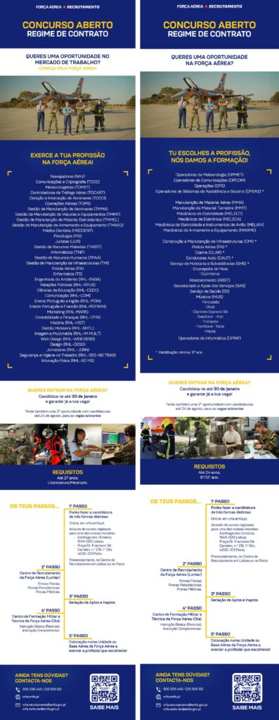 Uma oportunidade para quem procura uma carreira ao serviço do país, com formação, estabilidade e progressão profissional.