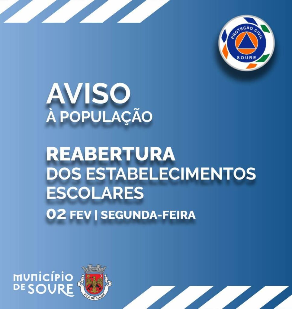 Os estabelecimentos escolares da Freguesia, à semelhança do restante Concelho, permanecerão encerradas na sexta-feira, 30 de janeiro, por ainda não se encontrarem garantidas todas as condições de segurança.